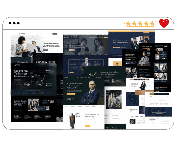 Se você cria sites para advogados, escritórios de advocacia, consultorias jurídicas, contadores, consultores financeiros, assessorias e negócios do setor financeiro, ter um pack de templates prontos é a chave para entregar projetos com mais velocidade, profissionalismo e alto padrão visual. Acesso a mais de 238 modelos prontos , modernos e rápidos.